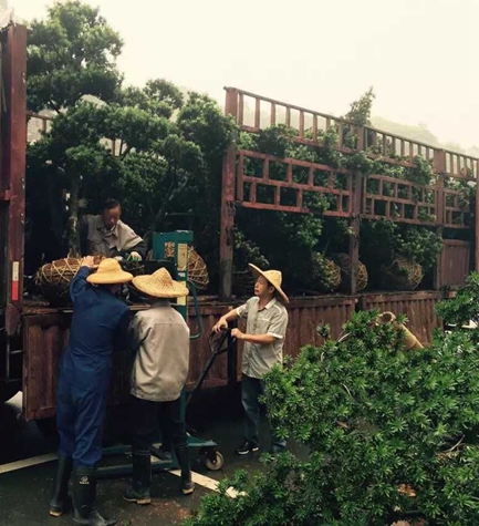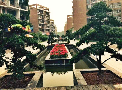 椒江校区生活区水街原来根据设计在两侧房屋中间种植银杏树,但由于银杏树杆高,在台风季节容易被大风刮倒,且每年10月下旬至11月落叶,对水街喷池造成污染。为提升生活区绿化美化建设,遵从“错落有致、特色分明”的要求,后勤服务管理处经过调研,选定了姿翠秀雅、苍古矫健,叶形小、叶色四季鲜绿,且耐修剪、观赏价值高的罗汉松来替代银杏树,并派人到金华等地选定树苗。