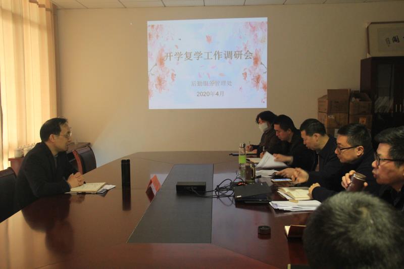 4月15日上午,副校长胡韶光到后勤调研指导开学复学工作。校后勤党政领导班子成员及各中心主任、副主任参加调研会。