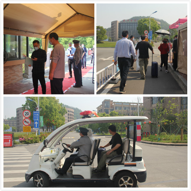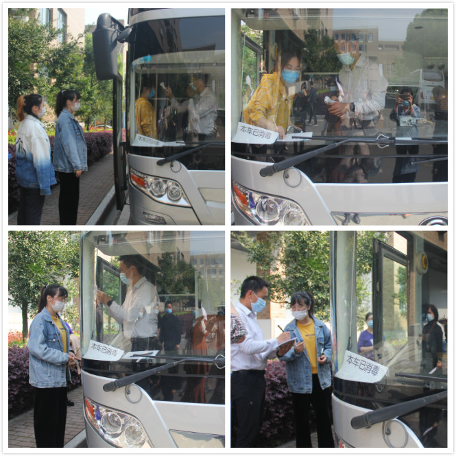 本环节演练地点在椒江校区校车停车点,由后勤处负责现场指挥,主要模拟教职工乘校车发现体温检测异常(额温≥37.5℃)的处置场景。