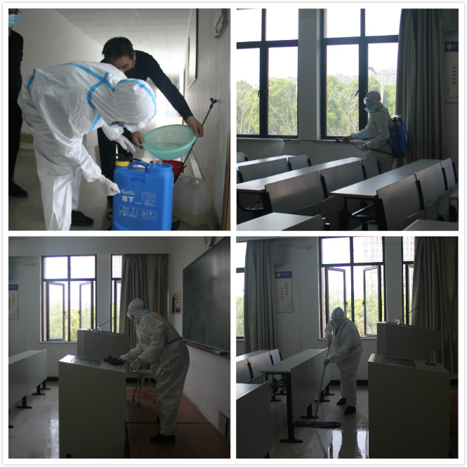 本环节演练地点在椒江校区4号教学楼204,由后勤处负责现场指挥,主要模拟保洁人员日常清洁消毒教室环境的处置场景。