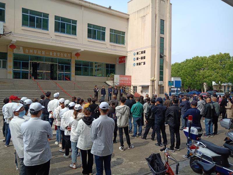 复学后如何就餐,是对学校后勤的严峻考验,也是家长和学生们非常关心的问题。为解决这个问题,落实学校疫情防控师生就餐工作方案,进一步贯彻胡韶光副校长在后勤开学和疫情防控工作部署会上的“五个进一步”讲话精神,确保师生复学后就餐秩序,使就餐方案进一步细化,4月24日,在校后勤服务管理处的组织下,分椒江、临海校区开展了一场复学就餐专项演练活动。副校长胡韶光,学生处、保卫处、团委等职能部门负责人到场参与指挥。后勤与基建党总支书记王凌主持。