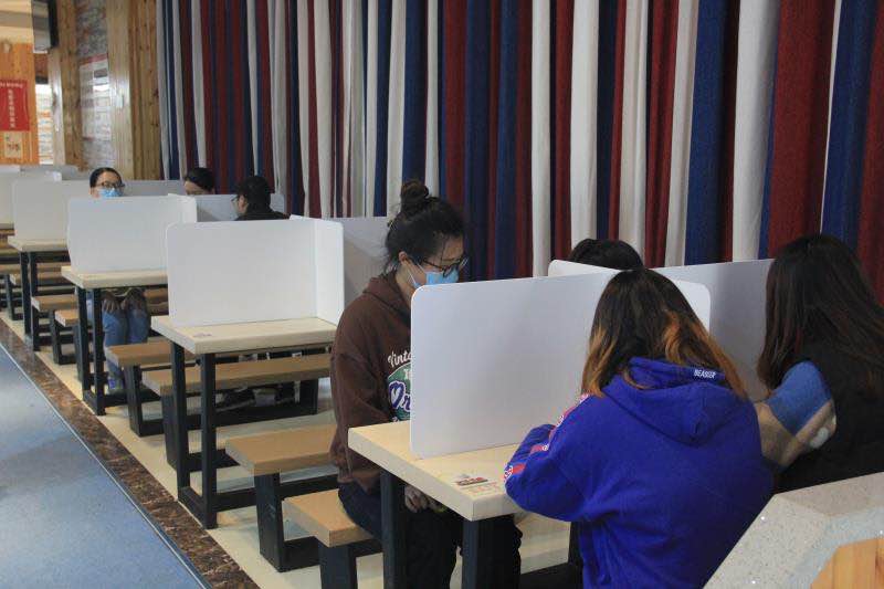 演练活动正式开始前,后勤服务管理处副处长王秋方就本次演练方案进行详细解读,对全体参与人员进一步明确各自任务分工,并嘱咐大家按规定做好个人防护。演练活动开始,食堂入口实行“人员限流、出一进一”的模式,由“教职工”扮演“返校学生”在食堂门口隔离带通道排列,并保持互相间隔一米以上的距离,按照标志标识有序进入食堂取餐用餐,就餐现场每张桌子上都放置了隔板,确保一桌一椅一人制,避免面对面就餐,避免谈话交流并缩短就餐时间。同时在学生公寓门口,“全副武装”的食堂工作人员在规定时间将预定数量的快餐送餐到位,现场工作人员也有序开始对照订单发放。从“学生”取餐、就餐,再到离开现场,整个分餐演练流程操作规范、有序完成。