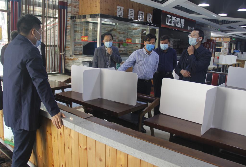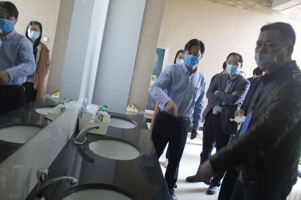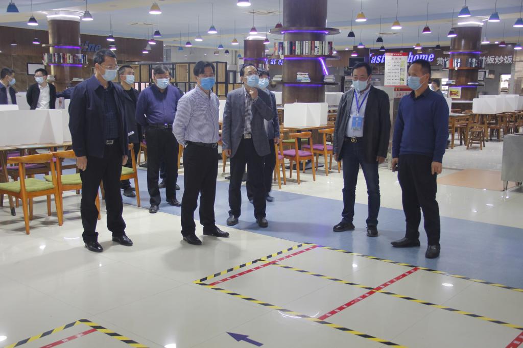 陈光亭一行深入食堂、商铺、学生公寓、教学楼等各区块,仔细了解各项工作落实情况。在食堂门口,驻足在《复学后师生用餐示意图》前,对其中公告的内容表示赞赏,并实地查看就餐排队标识标线、餐桌隔板安装情况。在商铺,向商家了解货品准备、进货渠道、临保食品处理情况,并指导校内快递投递流程。在学生宿舍区了解如何加强宿舍管控,查看了隔离间设置情况,询问预防性消毒工作开展情况,并深入宿舍内部查看了寝室卫生间样板间改造情况。针对实地查看情况,强调要进一步落实防控各项措施,精准防控,根据实际情况动态调整方案举措,确保做好学生顺利返校、有序开学的各项服务保障工作。