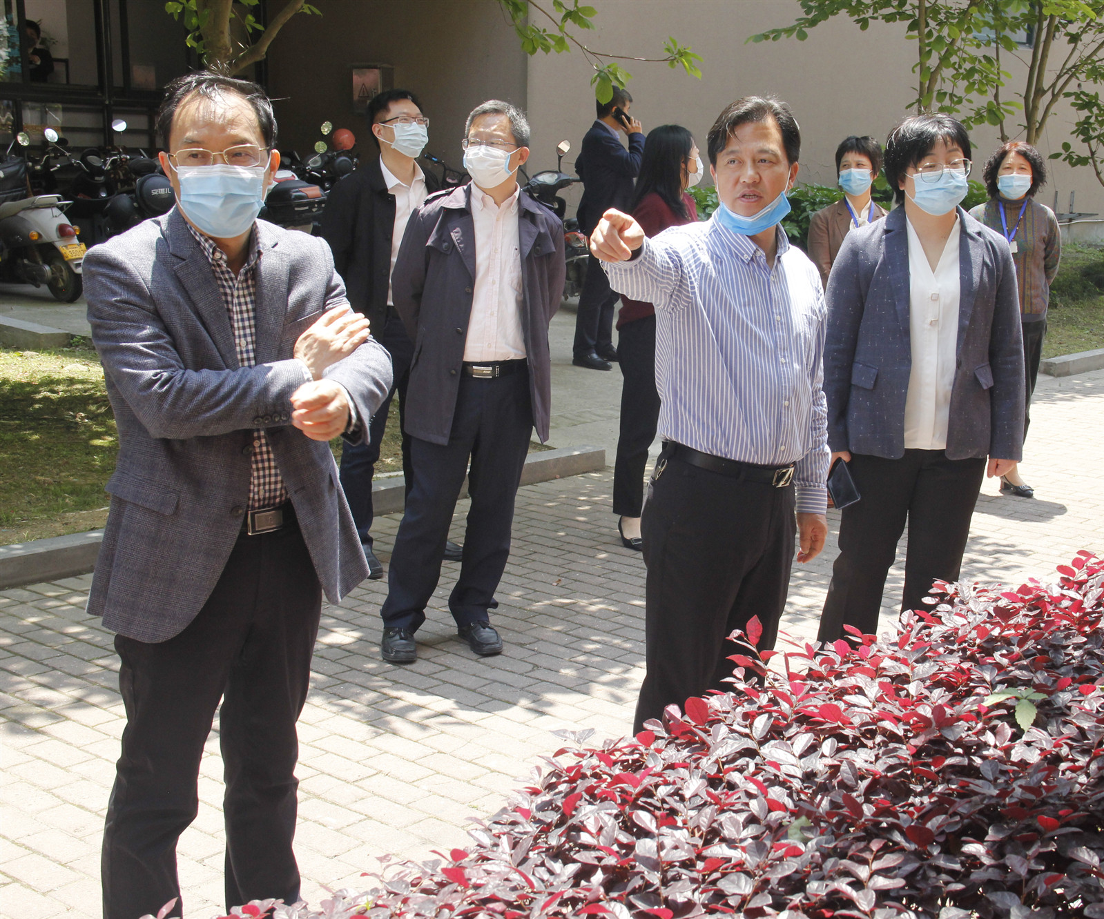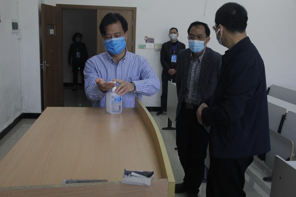 4月28日,校长陈光亭、校党委副书记金先龙、副校长胡韶光、李钧敏,校党委委员、宣传部长金松一行深入两校区后勤各区块,实地查看指导开学与疫情防控各项工作。党校办、纪检监察室、学生处、教务处、后勤服务管理处等部门负责人陪同。