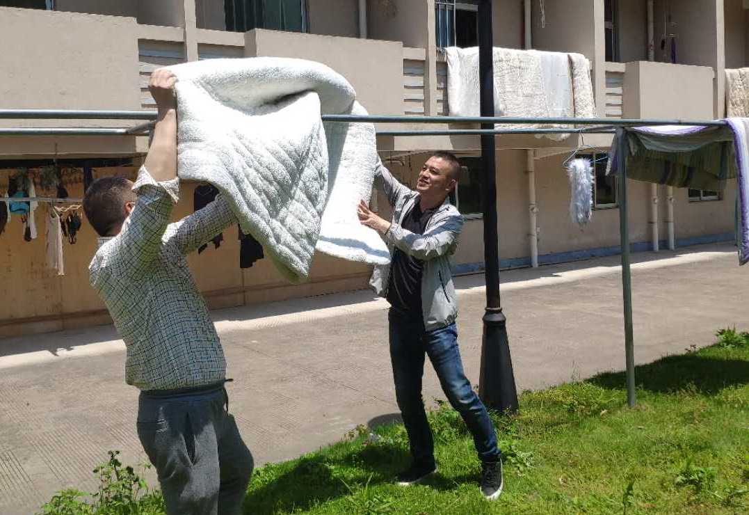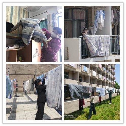 事先,两个党支部组织党员干部志愿者精心策划嗮被子方案,自4月28日接到申请预约后,党员、宿管楼道管理员马上分批开始晾晒。细心的志愿者们为防止被子错拿,提前按照寝室门牌号和床铺位置给同学们的被子等床上用品贴上标签,再拿到阳台、宿舍顶楼、宿舍楼下晾衣杆上等地方晾晒。经过几小时的晾晒,志愿者还要翻动被子、拍打被子上的灰尘,被子收回后,折叠好再送回原寝室的相应床位。