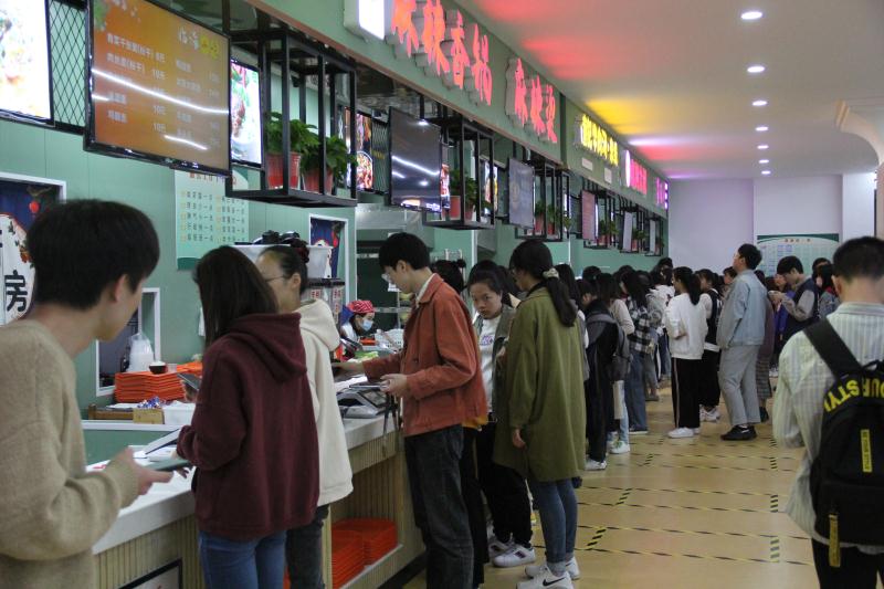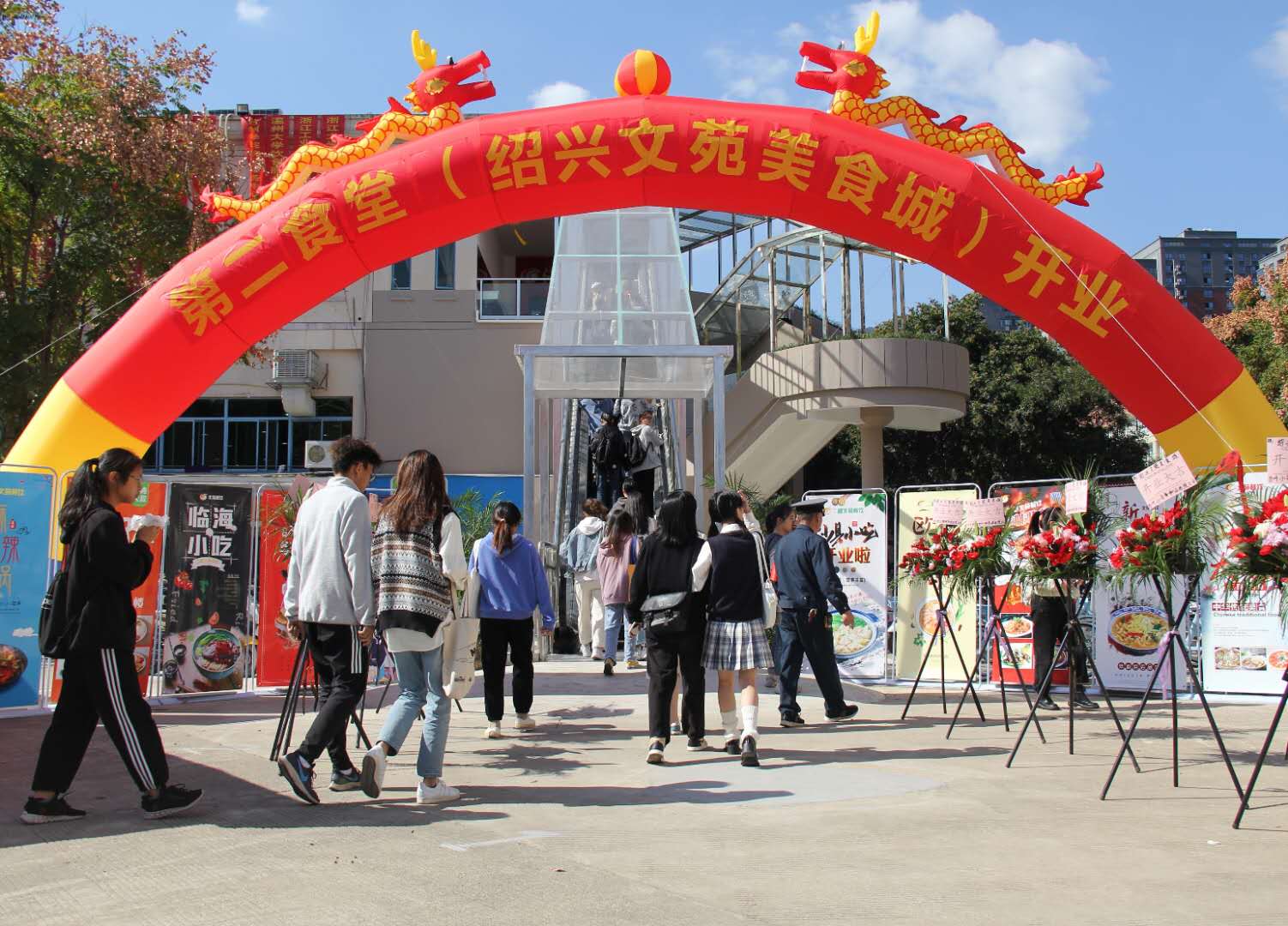 临海校区第二食堂正式营业 经过试营期的磨合与调整,11月10日,临海校区第二食堂(文苑美食城)正式开业。副校长胡韶光到场指导,校后勤服务管理处党政领导陪同。