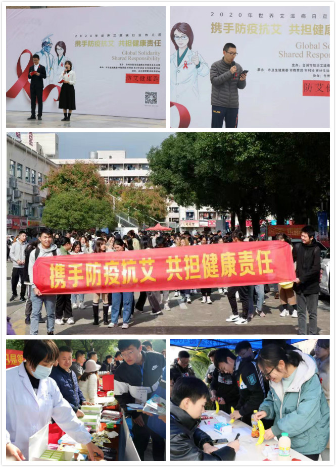 12月5日,台州学院医学院团学会联合台州市防治艾滋病工作委员会办公室在至善广场开展“你我抗疫同防艾,健康行动不防爱”防艾健康跑活动。活动前首先由分团委书记章华婷老师和台州市疾控中心医师汪剡灵发表致辞。共同强调了当代大学生应该积极主动参与防疫工作的责任意识,消除对艾滋病人的歧视态度,为社会增添一份温暖.在活动现场分为四个站点,包涵“迎面艾滋”“脑力运球冲冲冲”“防艾五元一角”“艾滋知识答题”等防艾小游戏。同学们系上了红丝带,积极参与防艾知识答辩,用身体力行防艾保护措施 。每一个环节都以寓教于乐的方式普及了科学知识,用温情热忱的能量传递了真挚关爱。
