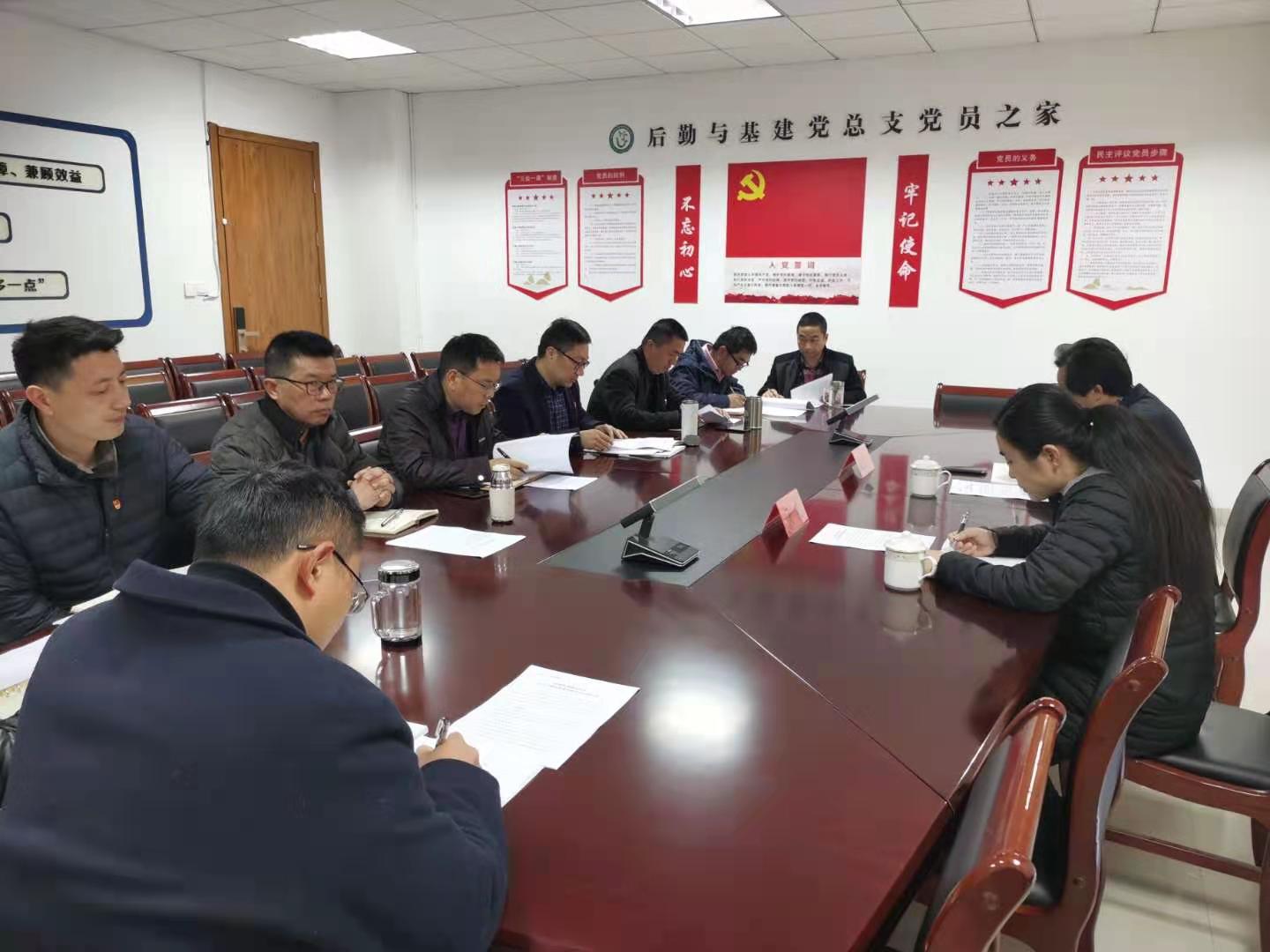 3月23日上午,校党委副书记潘通天到后勤与基建党总支调研指导工作,后勤与基建党政领导、总支委员参加会议。