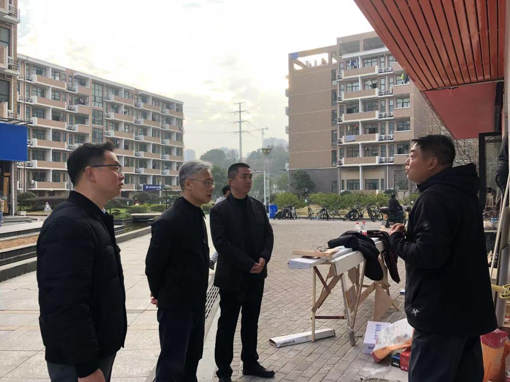 2月16日,副校长、党委委员杨健国检查学校后勤开学准备工作,临海校区综合服务中心、后勤服务管理处等部门相关负责人陪同。