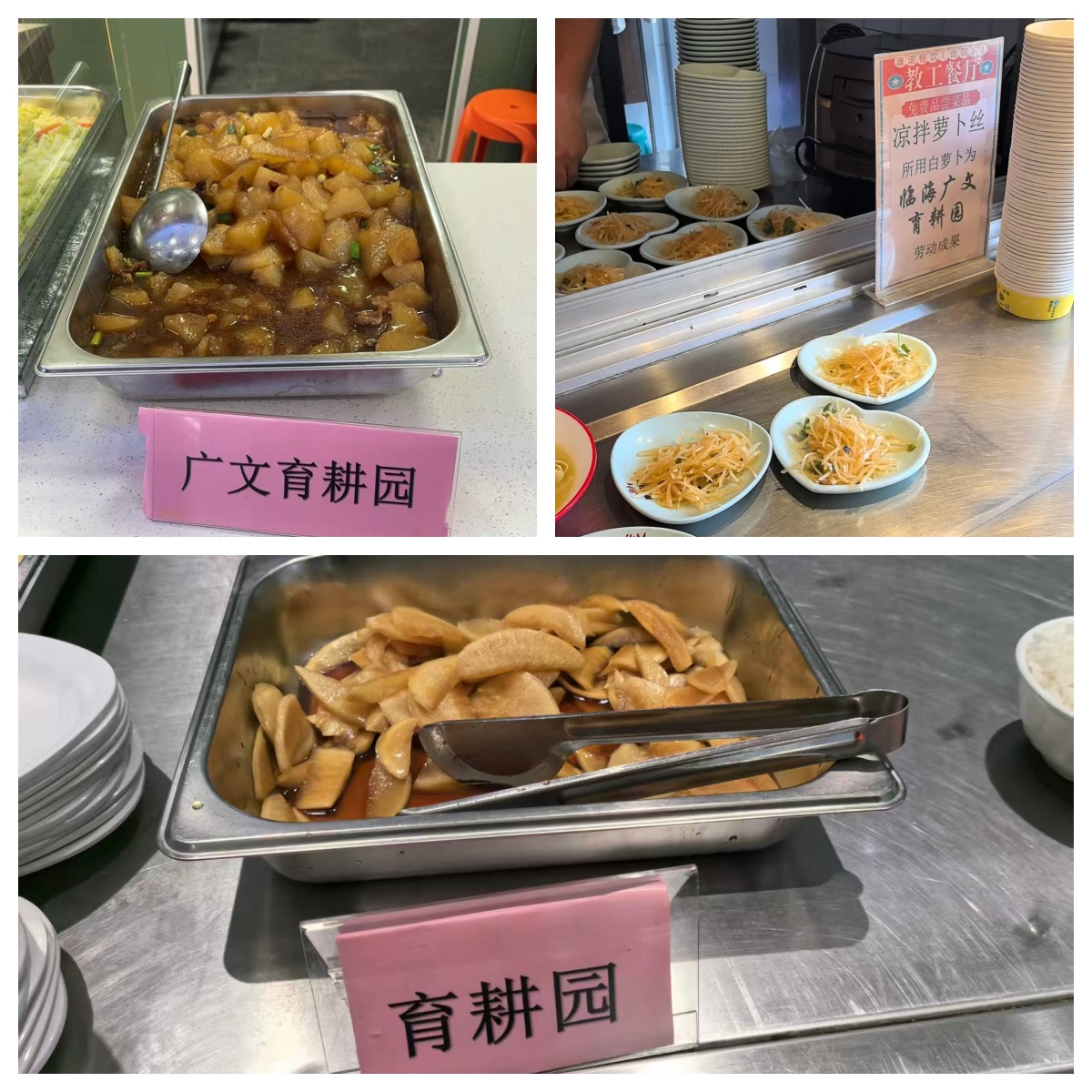 活动现场暖意融融,同学们分工协作、干劲满满,在欢声笑语中完成采收、去泥、装箱等工作,用亲身实践体会农耕的辛苦与收获的快乐,以及学会萝卜种植的相关知识,让劳动教育在田间地头生动开展。此次丰收的新鲜萝卜统一送至两校区食堂,精心制作成腌萝卜干、红烧萝卜块、凉拌萝卜丝等特色菜品,免费提供师生品尝。清爽可口的萝卜菜肴深受大家喜爱,让劳动成果化作舌尖上的美味,温暖了两校区师生的味蕾。