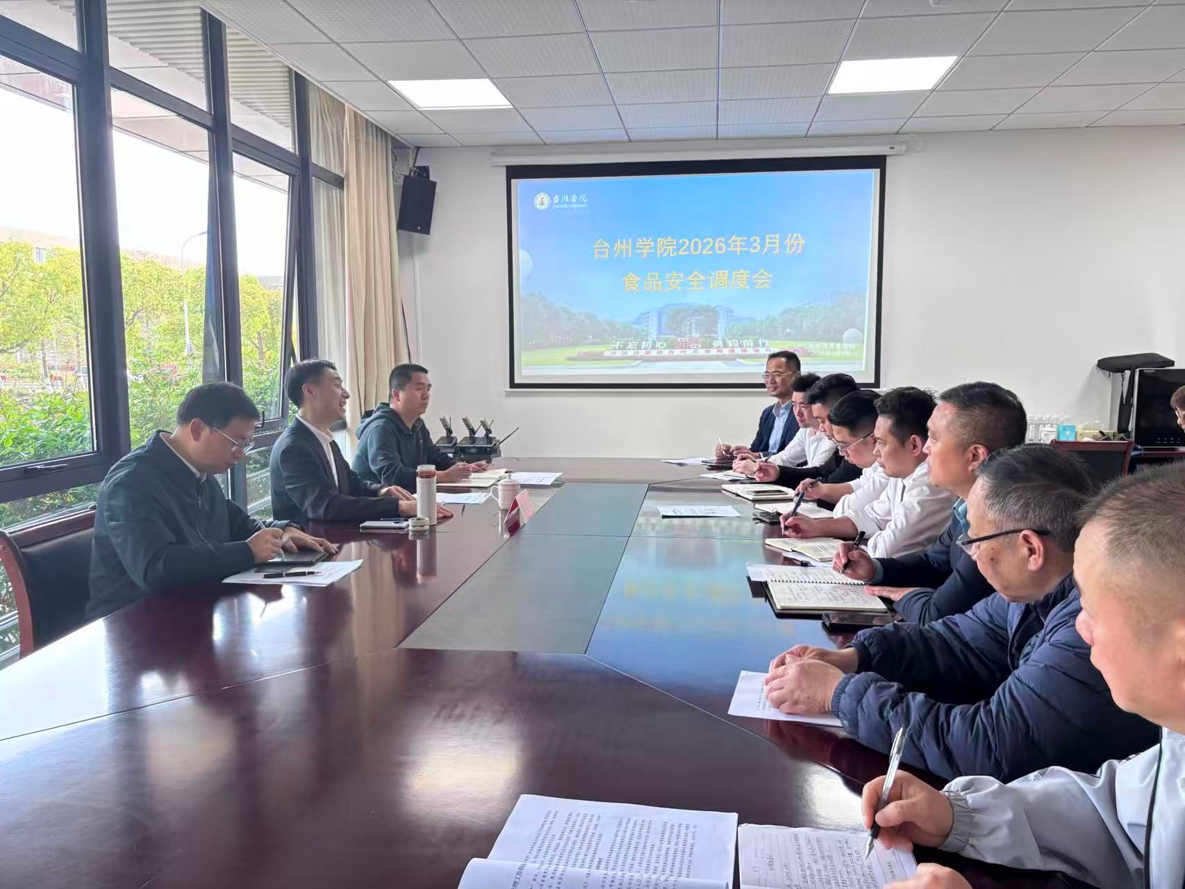 为筑牢校园食品安全防线,守护师生“舌尖上的安全”,4月9日,副校长、党委委员李建军带队深入椒江校区各食堂开展食品安全专项督查,后勤服务管理处相关负责人及食堂管理人员陪同检查。督查结束后,学校召开2026年3月食堂食品安全工作调度会,各食堂运营单位管理人员参会,会议由后勤服务管理处处长王秋方主持。